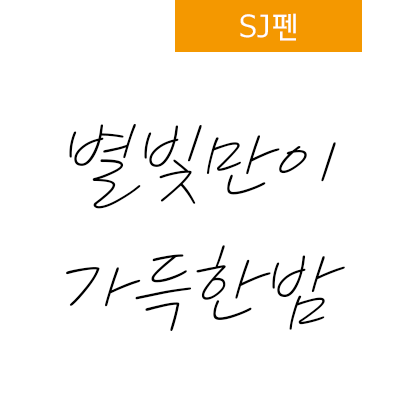 밤이다. 하늘은 푸르다 못해 농회색으로 캄캄하나 별들만은 또렷또렷 빛난다. It's night. The sky is blue and dark, but the stars shine clearly.