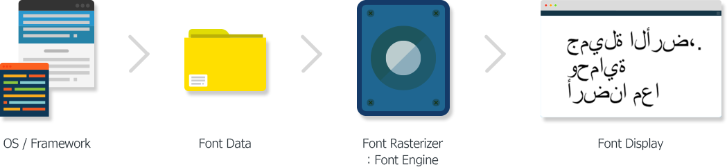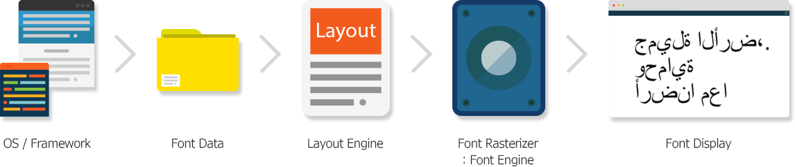 각 언어권의 문자 출력 방식을 맞도록 폰트 엔진을 지원합니다.